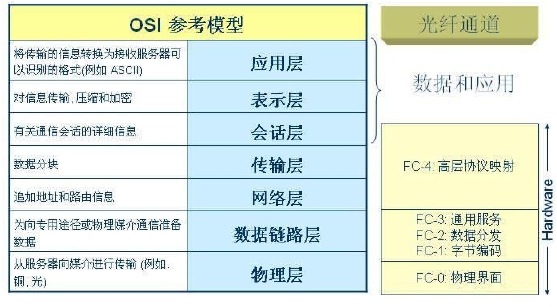 FC-0:物理層,定制了不同介質(zhì),傳輸距離,信號(hào)機(jī)制標(biāo)準(zhǔn),也定義了光纖和銅線接口